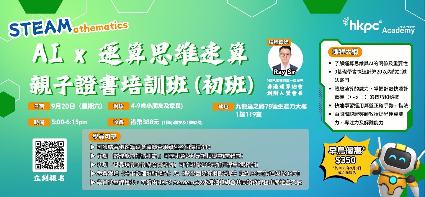- 由國際認證導師教授提昇運算能力、專注力及解難能力