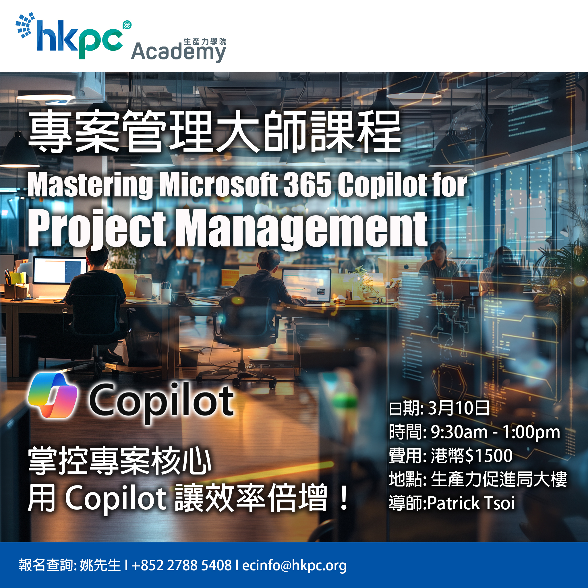 This course teaches project managers how to leverage Microsoft 365 Copilot to streamline planning, task allocation, risk management, and progress tracking. Participants will learn practical techniques and hands-on skills for creating AI-driven project dashboards.