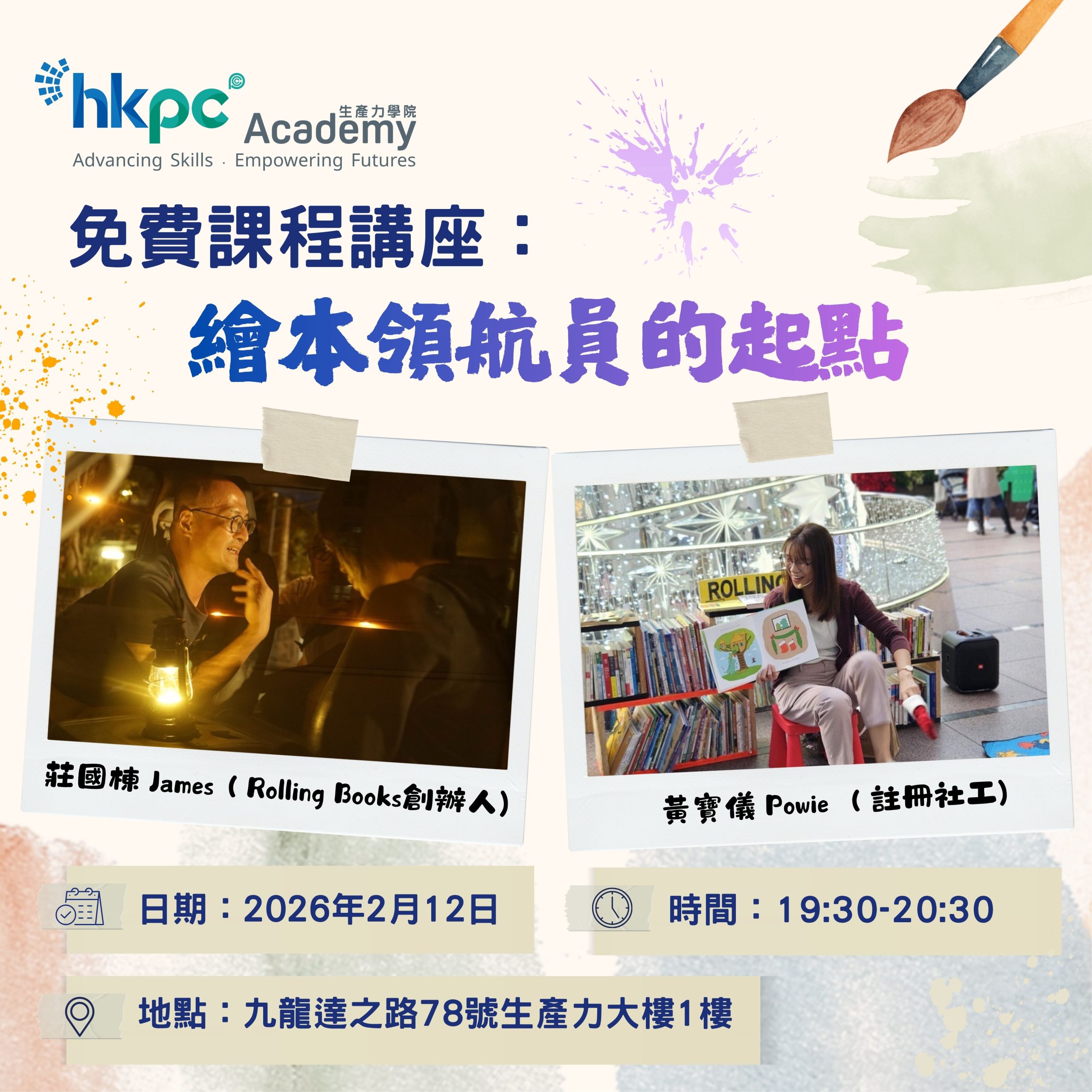 生产力学院与获奖社企Rolling Books推出全新课程「绘本领航员: 说故事教学初阶证书课程」。邀请参与者一探绘本故事世界的奥秘。本课程旨在通过认识绘本,掌握故事理论与技巧,以提升口语及表达能力,让学员成为绘本领航员带领听众投入于绘本故事之中。参与者将获得实务练习,并于最后一堂获得演练的机会,助你踏出成为专业说书人的关键第一步。
