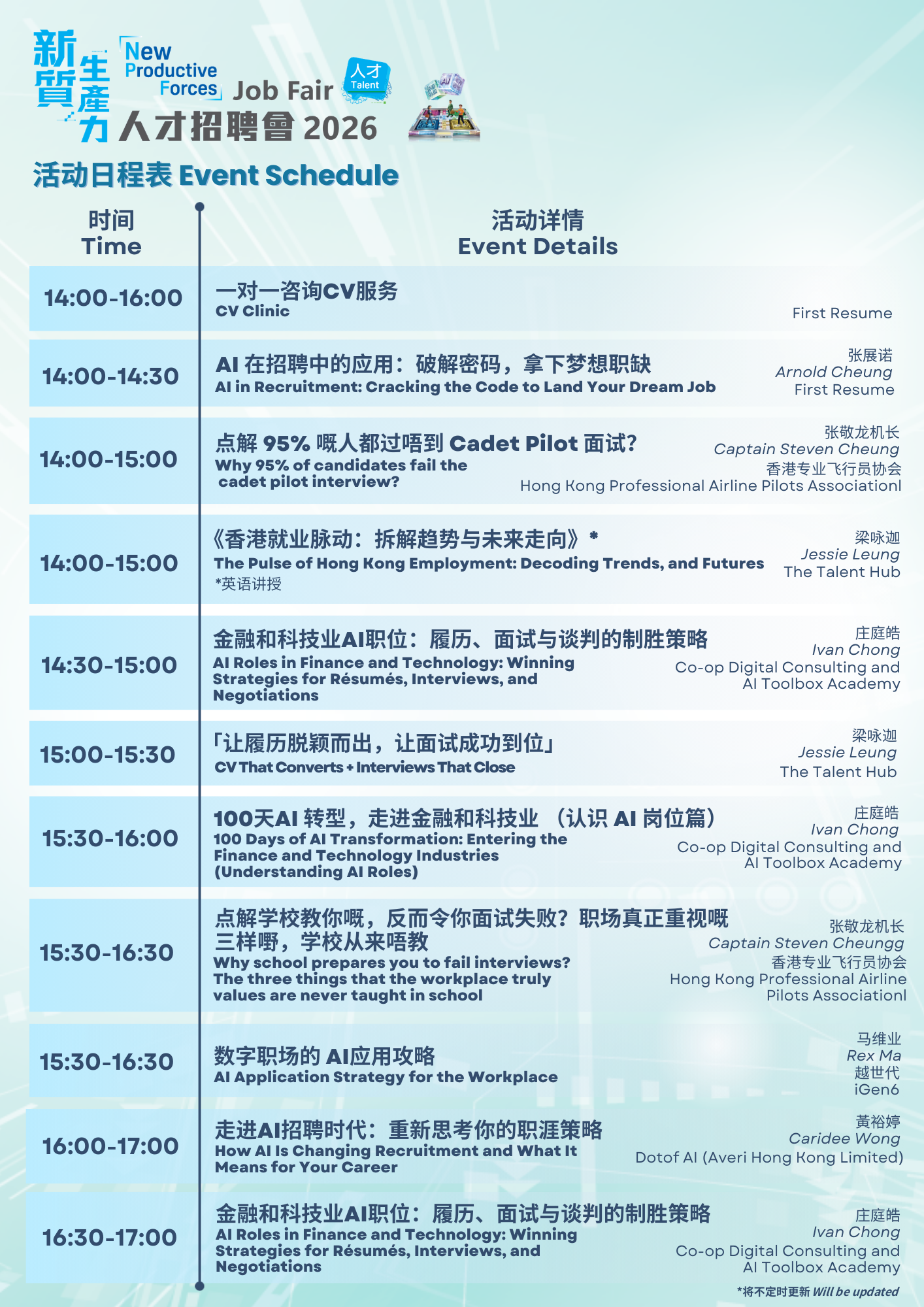 - 实战互动工作坊:AI履历优化、一对一咨询CV服务、免费专业CV相拍摄